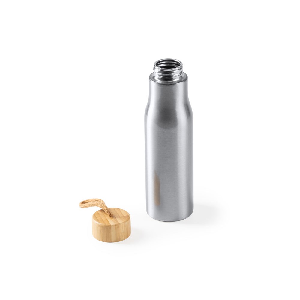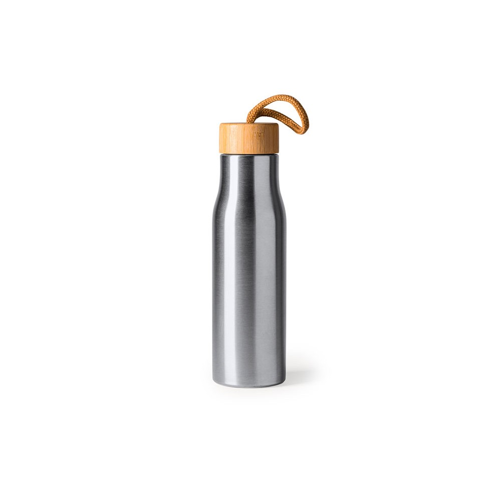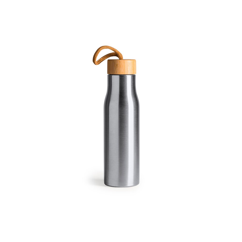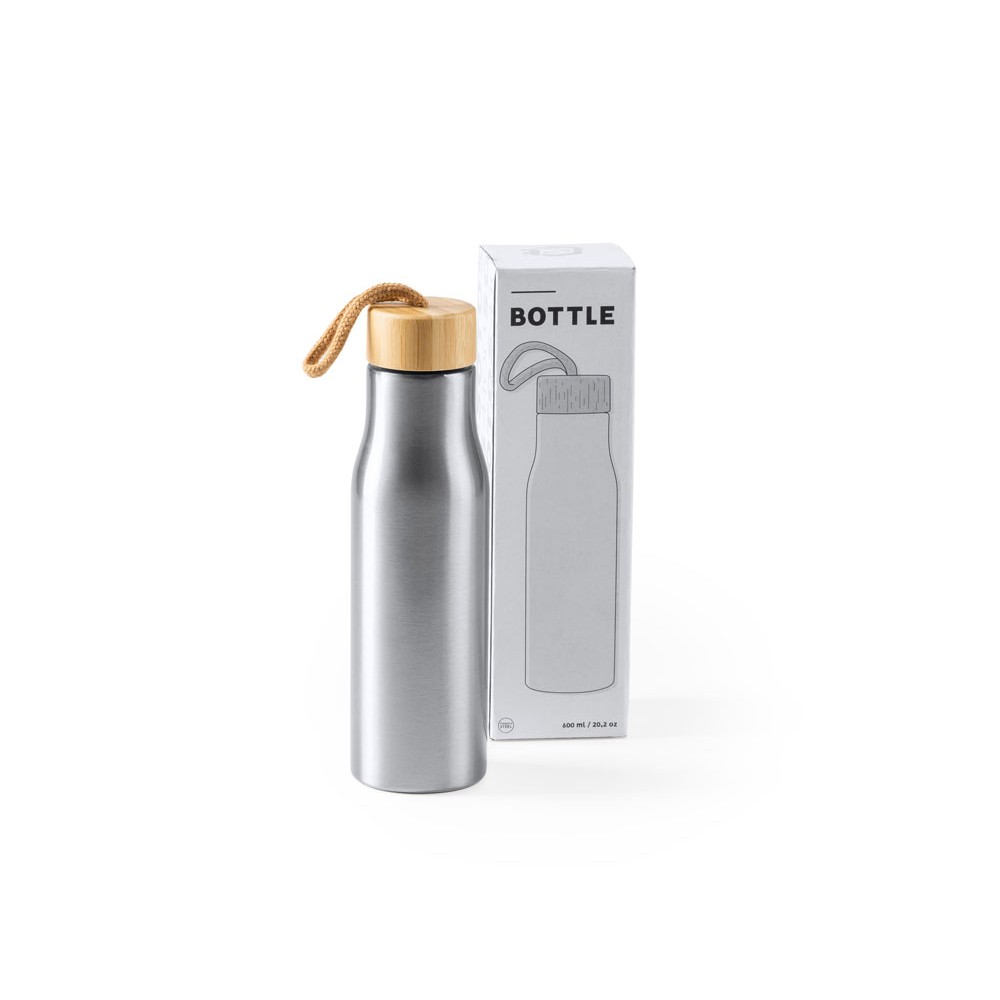 Бутылка из нержавеющей стали 304 с бамбуковой пробкой. В комплекте транспортировочный ремень. Объем 600 мл.