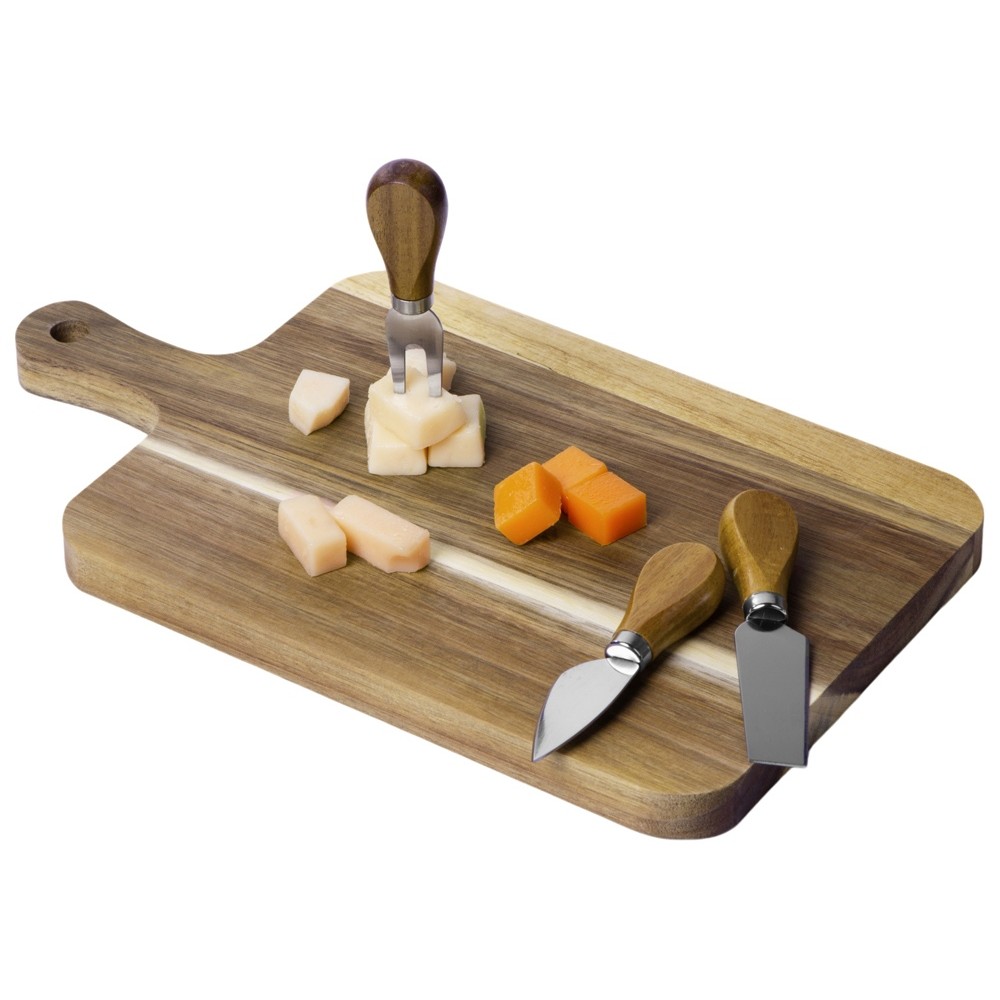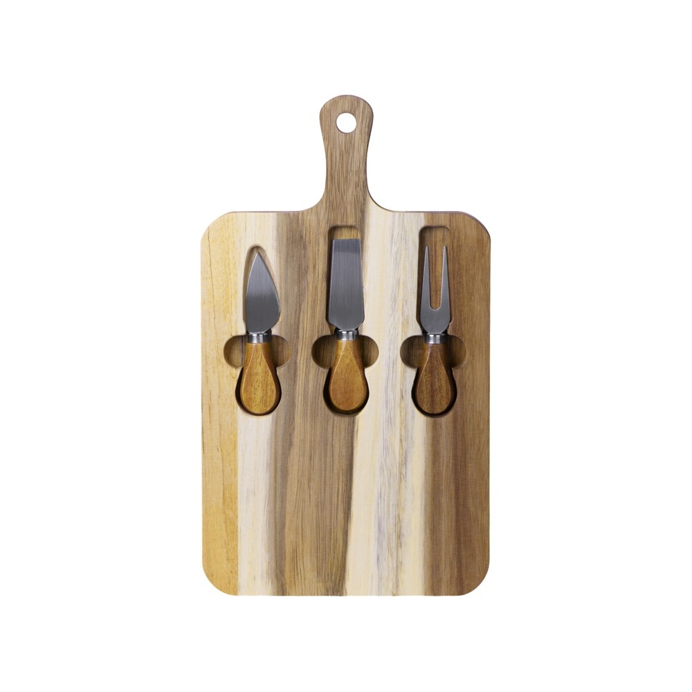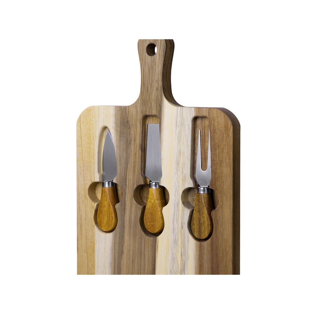 Вес853 Комплектностьразделочная доска 21,5 х 37,3 х 2 см, нож листовидный 11,2 см, нож-лопатка для мягкого сыра 12,2 см, вилка 12,3 см Материал товараакация, нержавеющая cталь