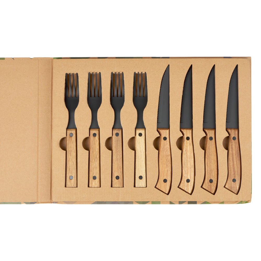 Remy — незаменимая вещь при выезде на природу, подойдёт как для стейков и шашлыка, так и для барбекю. В комплект входят приборы на 4 персоны (4 вилки и 4 ножа).