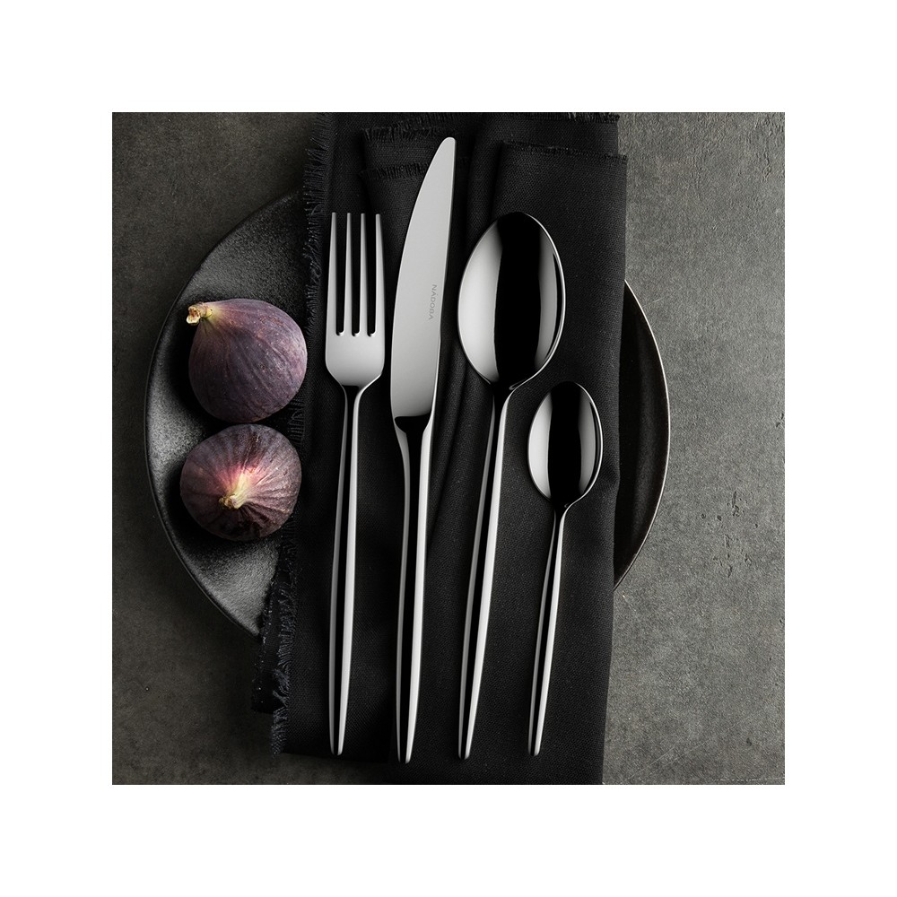 Приборы серии Misel изготовлены из высококачественной кованой нержавеющей стали. Они устойчивы к механическим повреждениям и воздействию любых сред, не меняют вкус блюд и долгое время сохраняют превосходный вид, полученный благодаря высокой степени полировки.