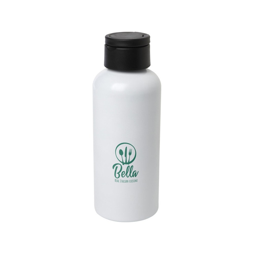 Бутылка для воды из переработанного алюминия, сертифицированного согласно RCS, с элегантным дизайном. Имеет крышку из переработанного пластика с отдельной петлей для переноски. Легкая и удобная для переноски. Объем: 600 мл. Recycled Aluminium, Recycled PP Plastic.
