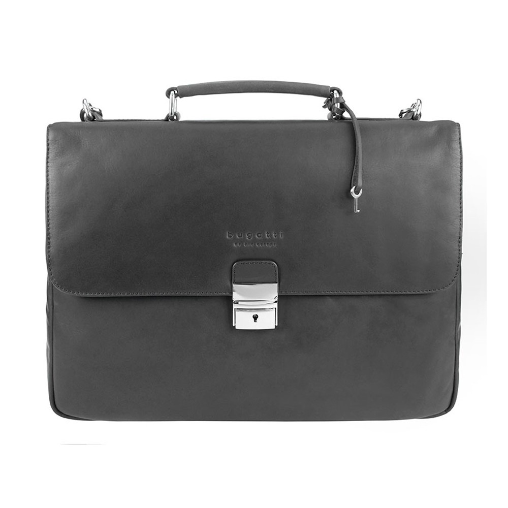 • Портфель BUGATTI РОМАНО | ROMANO 15'', чёрный, натуральная воловья кожа, 39х8х30 см