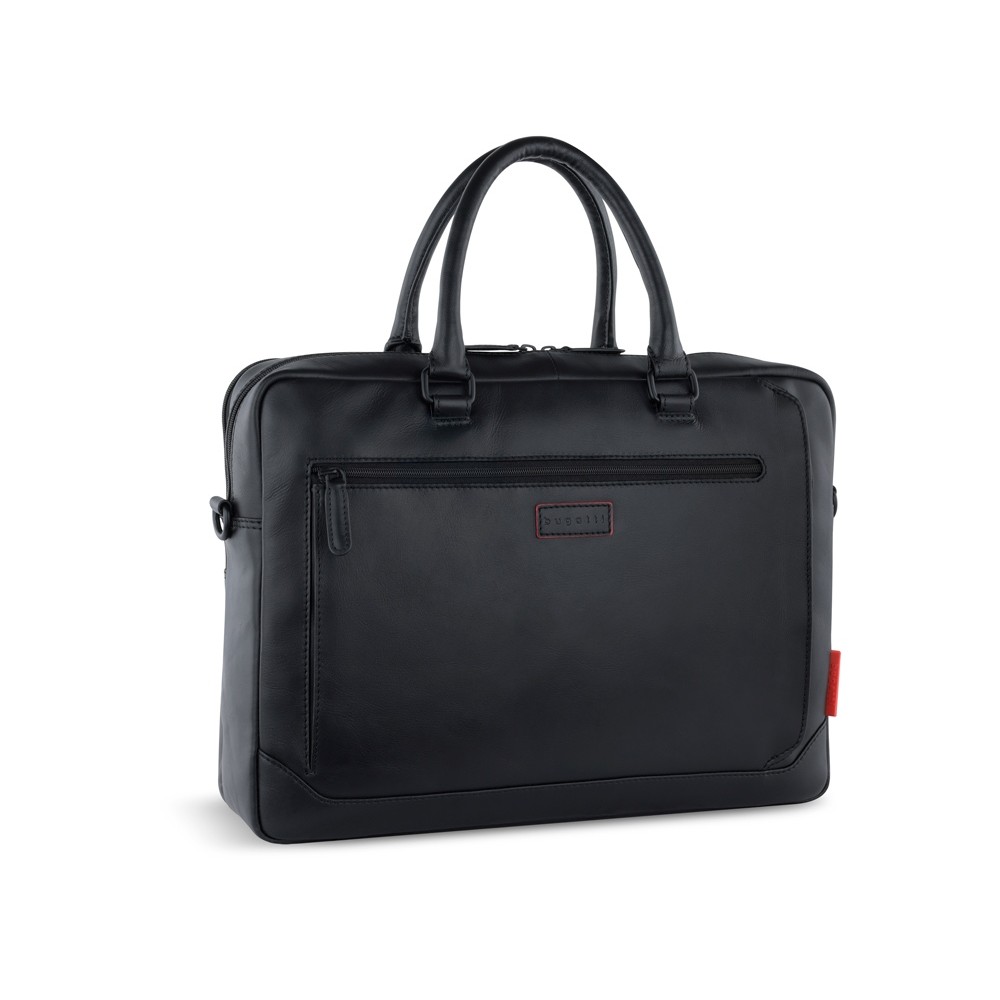 Портфель мужской BUGATTI КЛАРК | CLARK, чёрный, воловья кожа/полиэстер, 40х9,5х29 см, 10 л