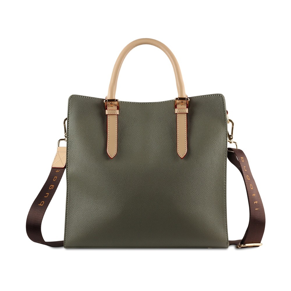 • Сумка-портфель женская BUGATTI ЭЛЛА | ELLA, оливковая, полиуретан, 30х11,5х28 см