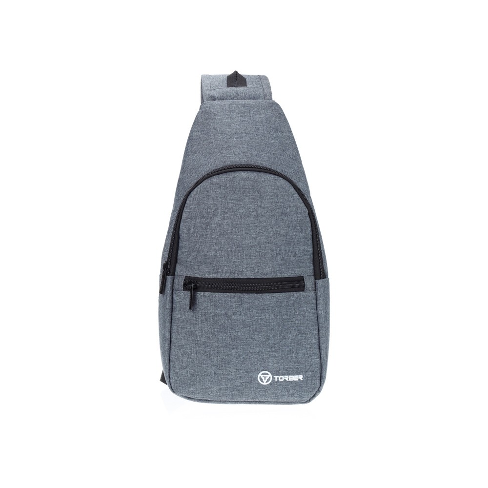 Рюкзак TORBER с одним плечевым ремнем, серый, полиэстер 300D, 33 х 17 х 6 см