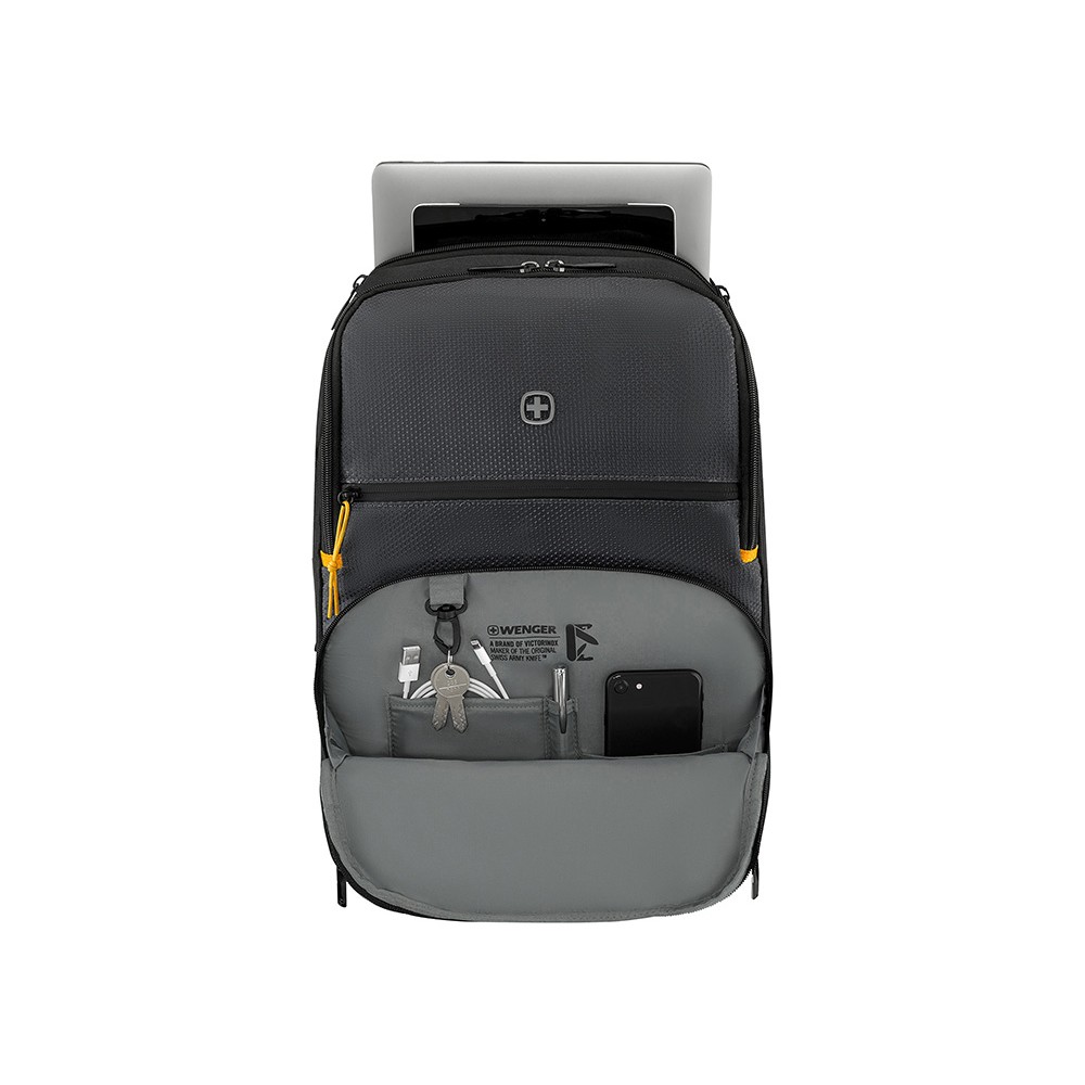 Комфорт обеспечивается продуманной эргономикой. Специальная система вентиляции спины поддерживает оптимальную температуру, а анатомические лямки идеально подстраиваются под вашу фигуру — всё в лучших традициях качества Wenger.