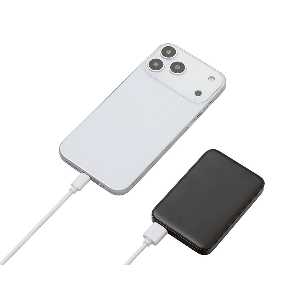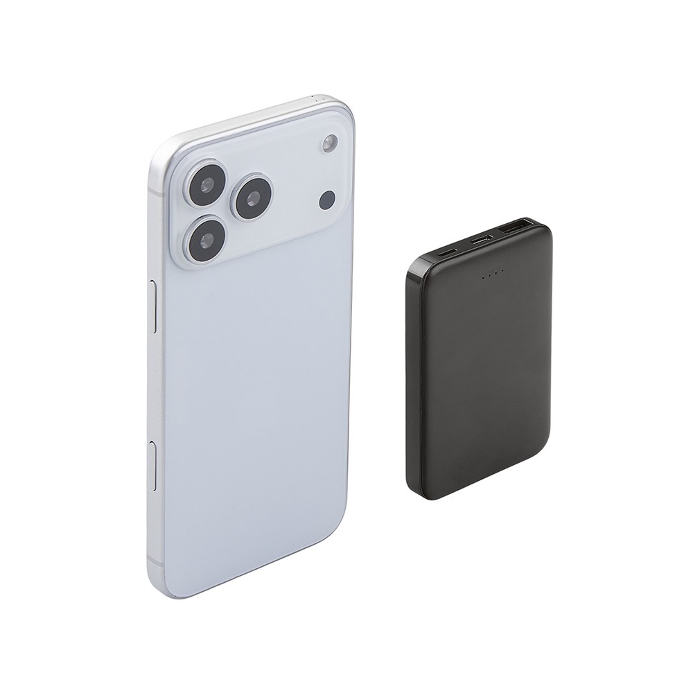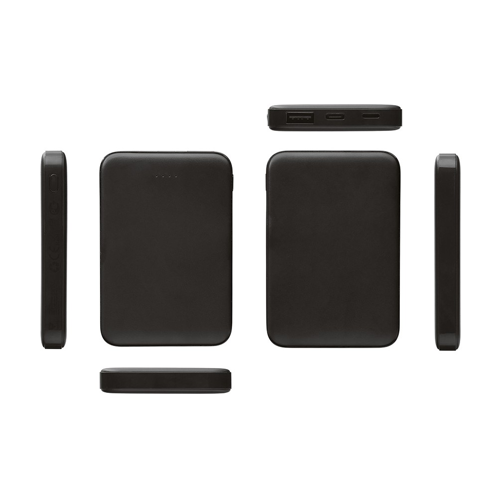 Стильный, тонкий и практичный — этот 5000 мАч повербанк создан для тех, кто ценит мобильность и универсальность. Идеальный корпоративный подарок для клиентов, партнёров и сотрудников, которые всегда в движении! Совместим со всеми смартфонами, имеется двунаправленный USB-C и дополнительное удобство - входной разъем Lightning. Разъемы USB-C и USB-A обеспечивают одновременную зарядку двух устройств. Благодаря мини размерам 91.5*62* мм и лёгкому весу (всего 102 г) легко помещается даже в карман рубашки или кошелёк. Лаконичная матовая поверхность выгодно подчеркнет логотип, а надёжная система защиты гарантирует безопасность при каждой зарядке. Поставляется в продуманной выдвижной упаковке с быстрым и эффектным открытием.