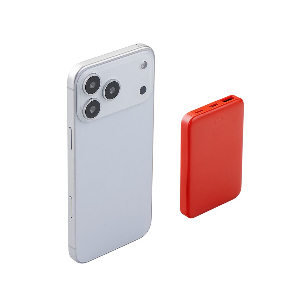 Стильный, тонкий и практичный — этот 5000 мАч повербанк создан для тех, кто ценит мобильность и универсальность. Идеальный корпоративный подарок для клиентов, партнёров и сотрудников, которые всегда в движении! Совместим со всеми смартфонами, имеется двунаправленный USB-C и дополнительное удобство - входной разъем Lightning. Разъемы USB-C и USB-A обеспечивают одновременную зарядку двух устройств. Благодаря мини размерам 91.5*62* мм и лёгкому весу (всего 102 г) легко помещается даже в карман рубашки или кошелёк. Лаконичная матовая поверхность выгодно подчеркнет логотип, а надёжная система защиты гарантирует безопасность при каждой зарядке. Поставляется в продуманной выдвижной упаковке с быстрым и эффектным открытием.