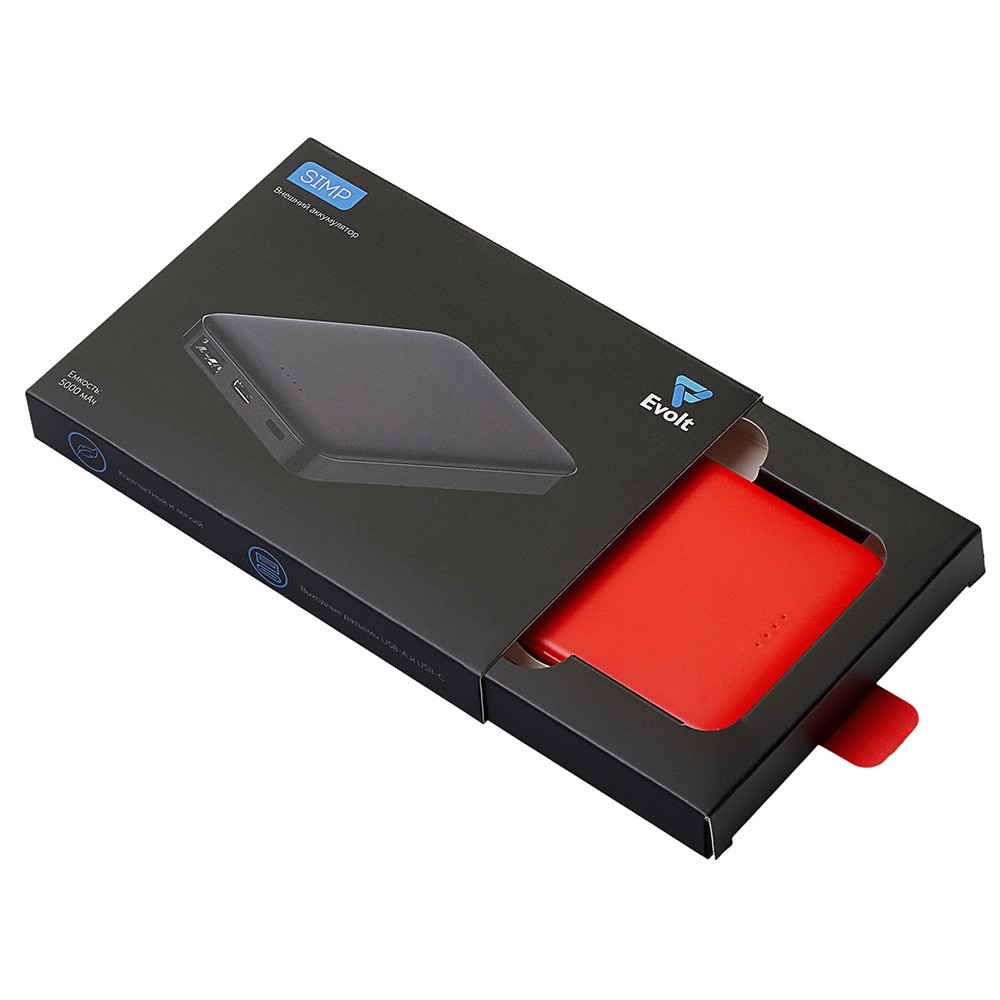 Технические характеристики Внешний аккумулятор «Simp», 5000 мАч, красный