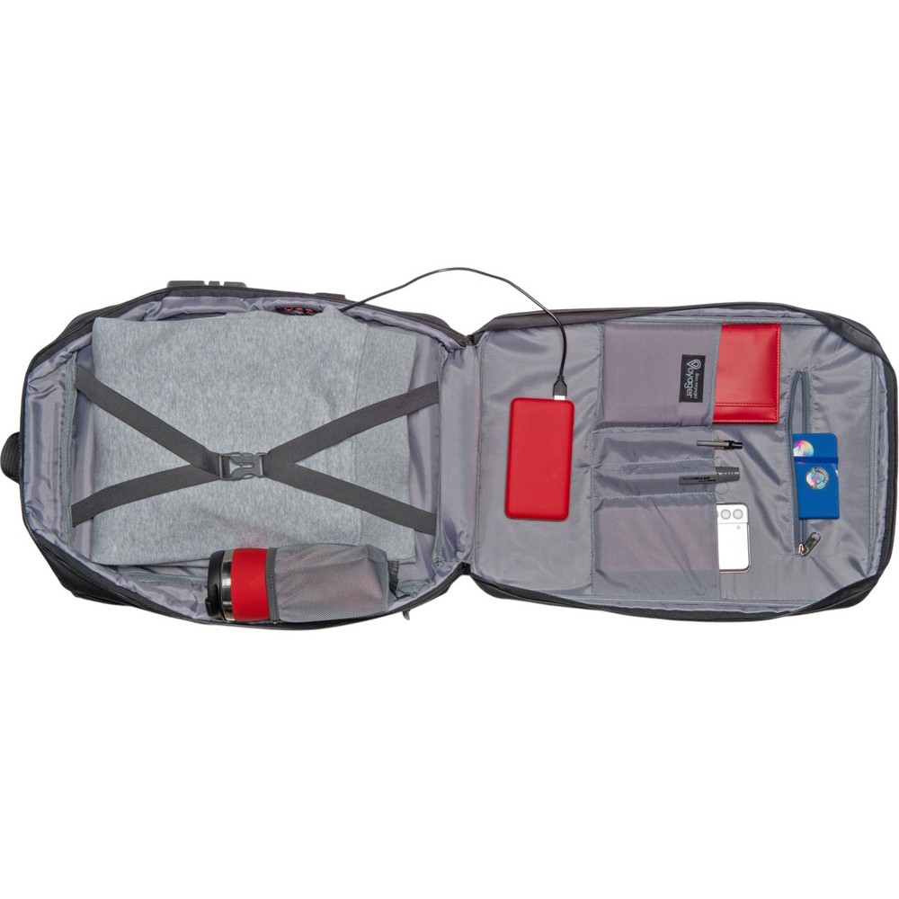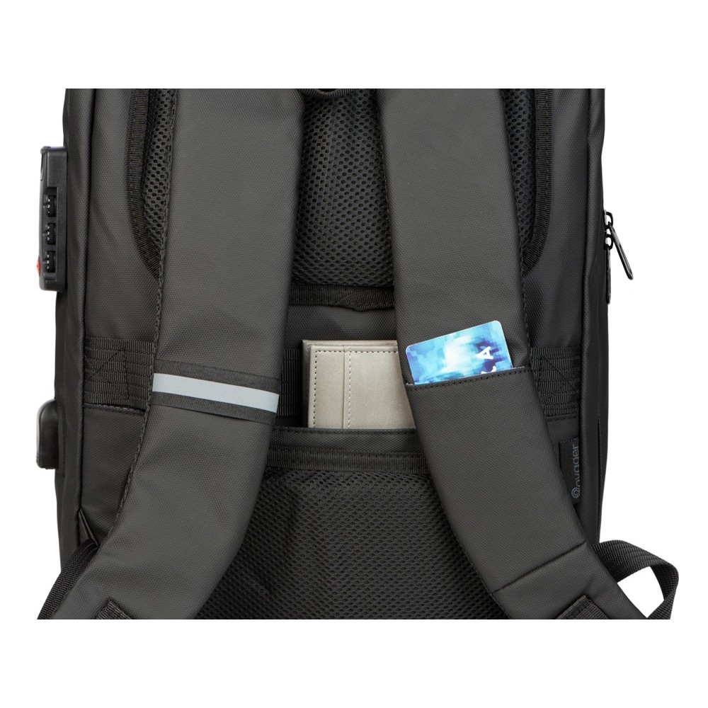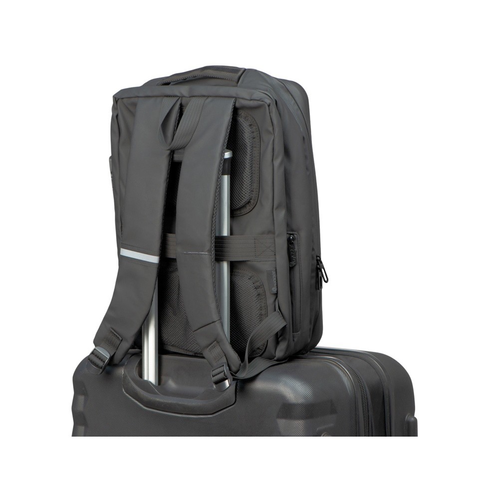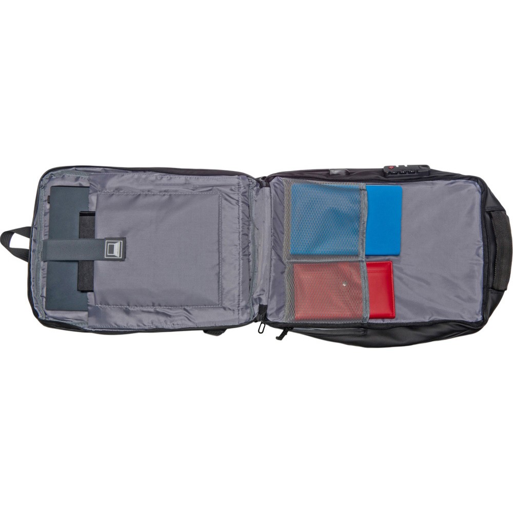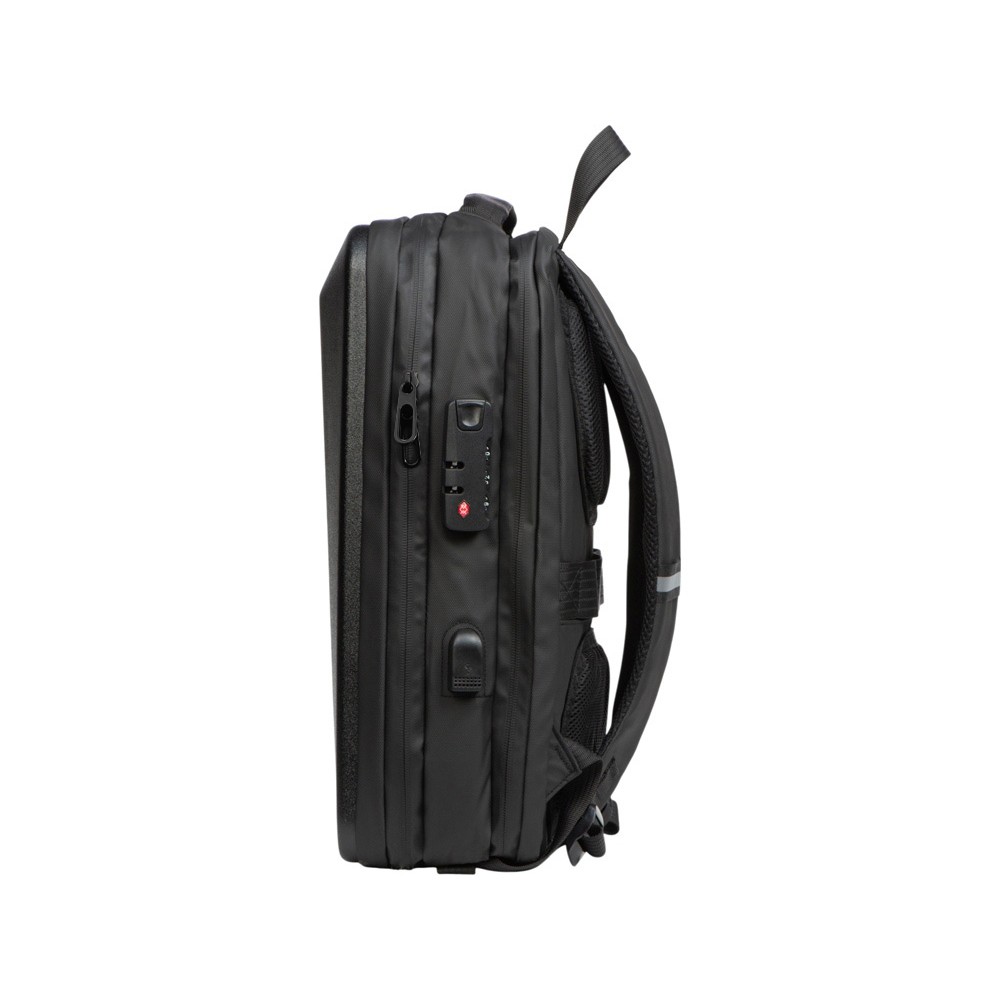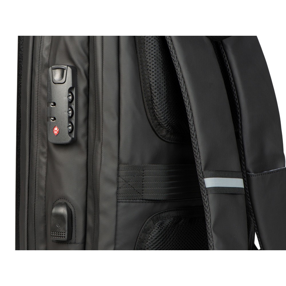 Водостойкий бизнес-рюкзак с пластиковой панелью спереди выглядит стильно и обеспечивает бережное хранение ваших личных вещей. Подходит для передвижений по городу и деловых поездок. 2 вместительных отделения позволяют разместить все необходимое: большое отделение для одежды с фиксирующими ремнями и органайзером, меньшее отделение с карманами для ноутбука и планшета и сетчатым органайзером. Несанкционированный доступ к содержимому вашего рюкзака будет затруднён благодаря кодовому замку и прочной пластиковой панели спереди. В рюкзаке предусмотрено много дополнительных удобств для использования:
