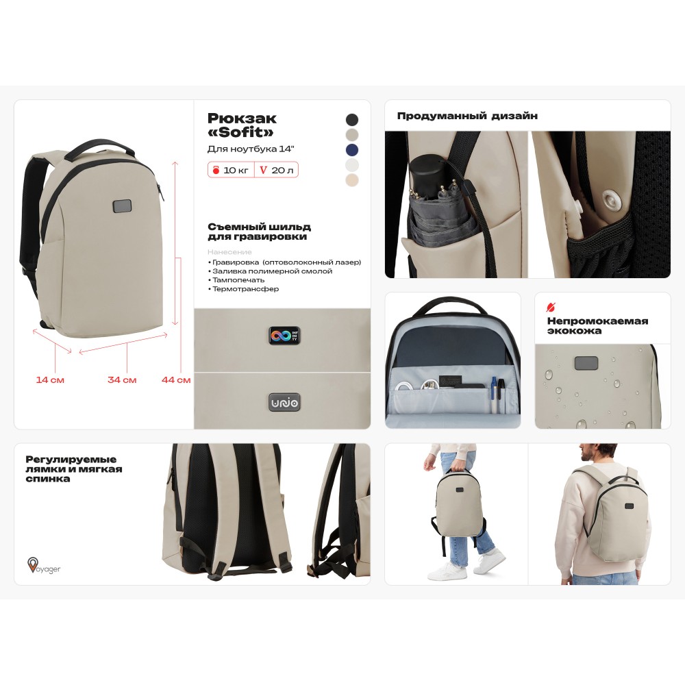 Технические характеристики Рюкзак Sofit для ноутбука из экокожи, черный