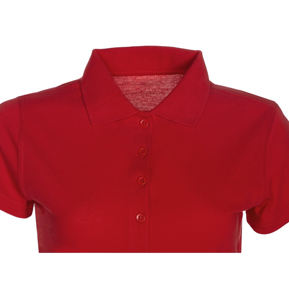 Женская рубашка-поло First. Воротник 1х1. Обшивка внутри воротника. Мужская и детская модели с 2 пуговицами, женская - с 4 пуговицами. Пуговицы с гравировкой в тон. Пике, 100% хлопок. 160 г/м2.