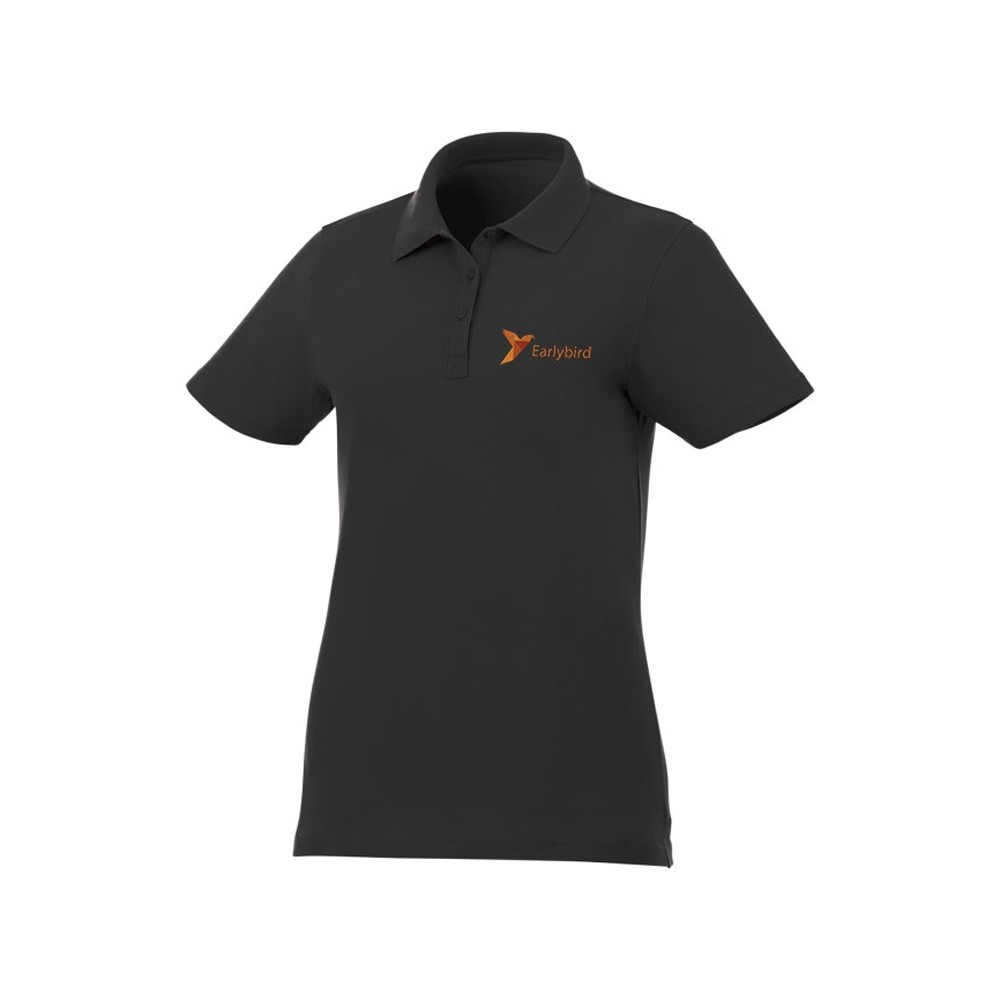 Liberty женская рубашка-поло с коротким рукавом. Женская модель с разрезами по бокам. Отрезной-отрывной ярлык для комфорта. Воротник гладкой вязкой в рубчик. Манжеты гладкой вязкой в рубчик. Планка с тремя пуговицами. Двойная строчка на воротнике и внизу изделия. Пуговицы в цвет изделия.
