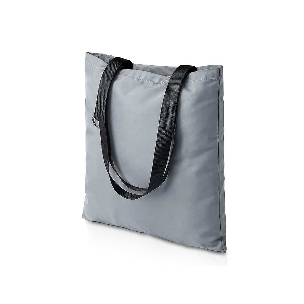 Сумка для покупок из светоотражающей ткани обеспечивает дополнительную защиту в темное время суток. Прочные ручки длиной 68 см. Металлическое д-кольцо на хлястике предусмотрено для крепления ремувок с вашим логотипом.