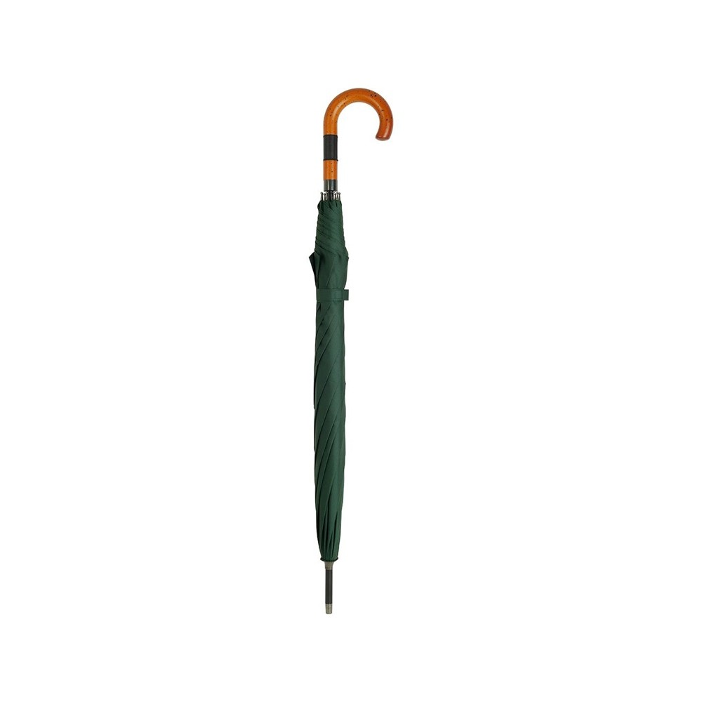 Купол этого полуавтоматического зонта покрыт тефлоном, который делает ткань более стойкой к промоканию и пятнам. Стильная ручка из натурального дерева со вставкой из искусственной кожи.