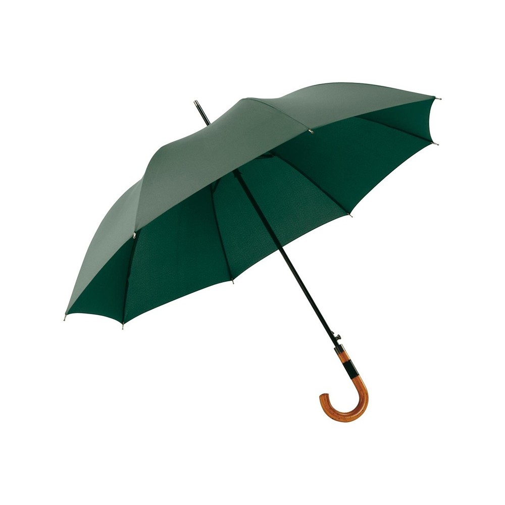 Купол этого полуавтоматического зонта покрыт тефлоном, который делает ткань более стойкой к промоканию и пятнам. Стильная ручка из натурального дерева со вставкой из искусственной кожи.