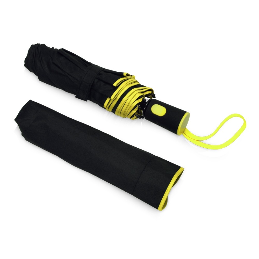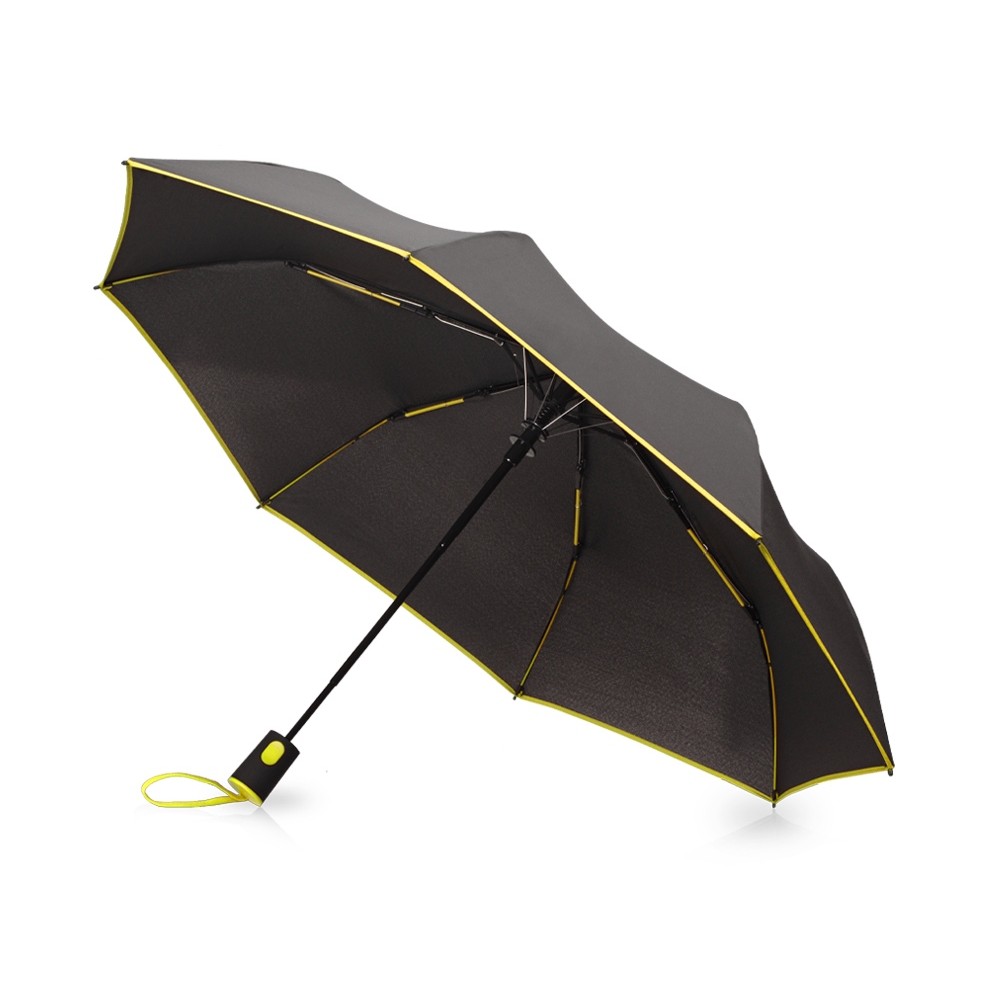 Зонт-полуавтомат складной Motley с цветными спицами, черный/желтый