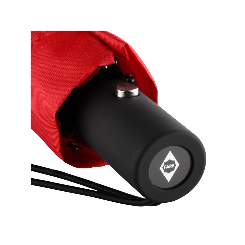 Полуавтоматический складной зонт открывается нажатием кнопки на ручке. Для большего удобства на ручку нанесено покрытие soft touch и добавлен эластичный шнурок.