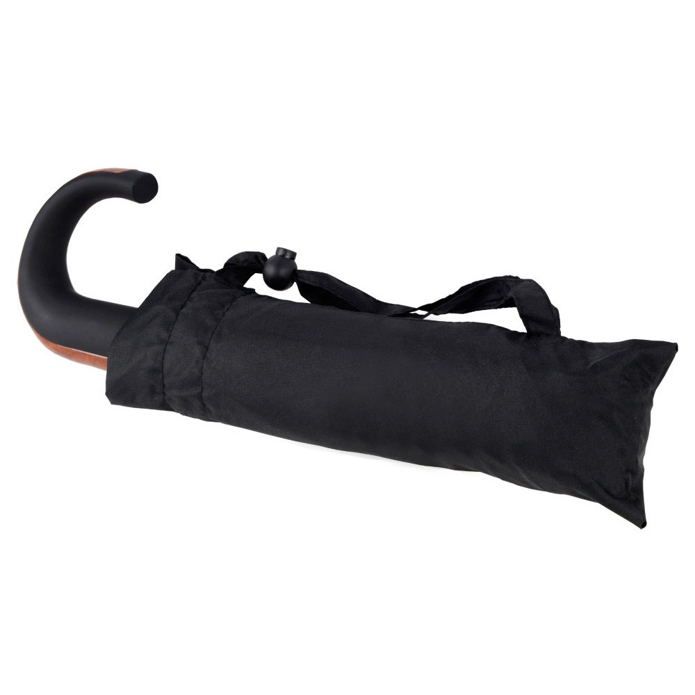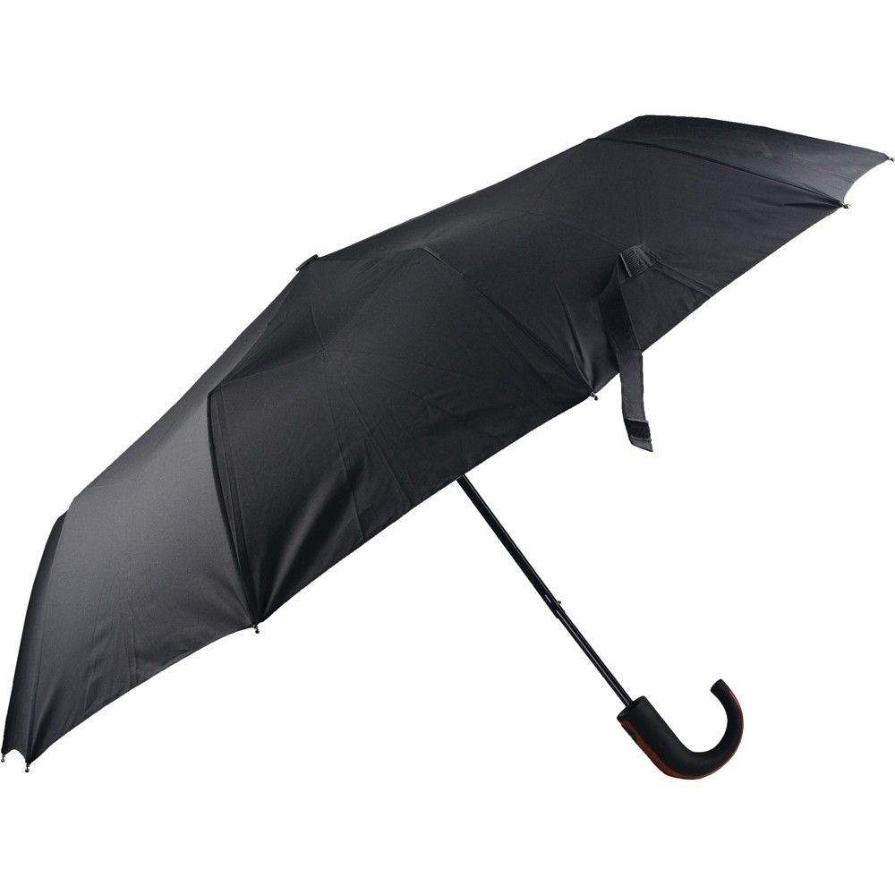 Отличный складной зонт для мужчин оснащен полуавтоматическим механизмом. Удобная рукоятка не скользит в руке, позволяя надежно удерживать зонт. Ручка зонта задекорирована под дерево. На купол можно нанести любое изображение.